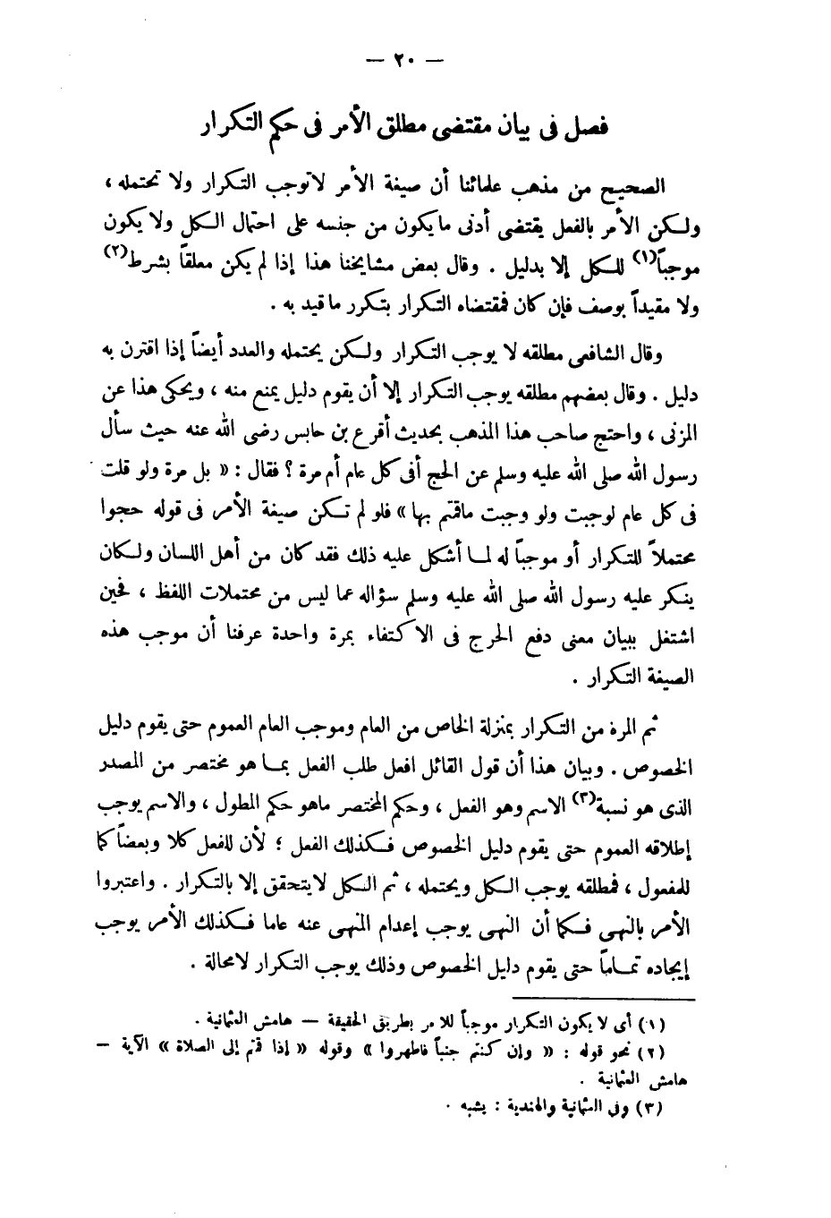 فصل فِي بَيَان مُقْتَضى مُطلق الْأَمر فِي حكم التّكْرَار