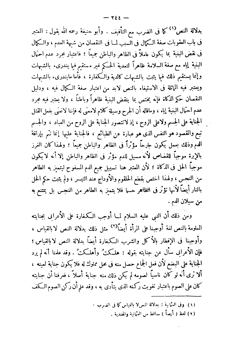 وَمن ذَلِك أَن النَّبِي عَلَيْهِ السَّلَام لما أوجب الْكَفَّارَة على الْأَعرَابِي بِجِنَايَتِهِ الْمَعْلُومَة بِالنَّصِّ لُغَة أَوجَبْنَا على الْمَرْأَة أَيْضا مثل ذَلِك بِدلَالَة النَّص لَا بِالْقِيَاسِ فَإِن الْأَعرَابِي سَأَلَ عَن جِنَايَته بقوله هَلَكت وأهلكت
