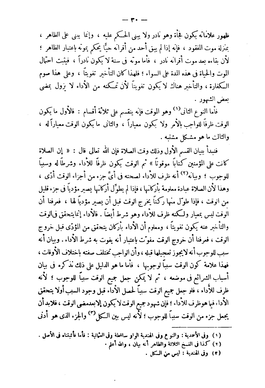 فَأَما النَّوْع الثَّانِي وَهُوَ الموقت فَإِنَّهُ يَنْقَسِم على ثَلَاثَة أَقسَام فَالْأول مَا يكون الْوَقْت ظرفا للْوَاجِب بِالْأَمر وَلَا يكون معيارا وَالثَّانِي مَا يكون الْوَقْت معيارا لَهُ وَالثَّالِث مَا هُوَ مُشكل مشتبه