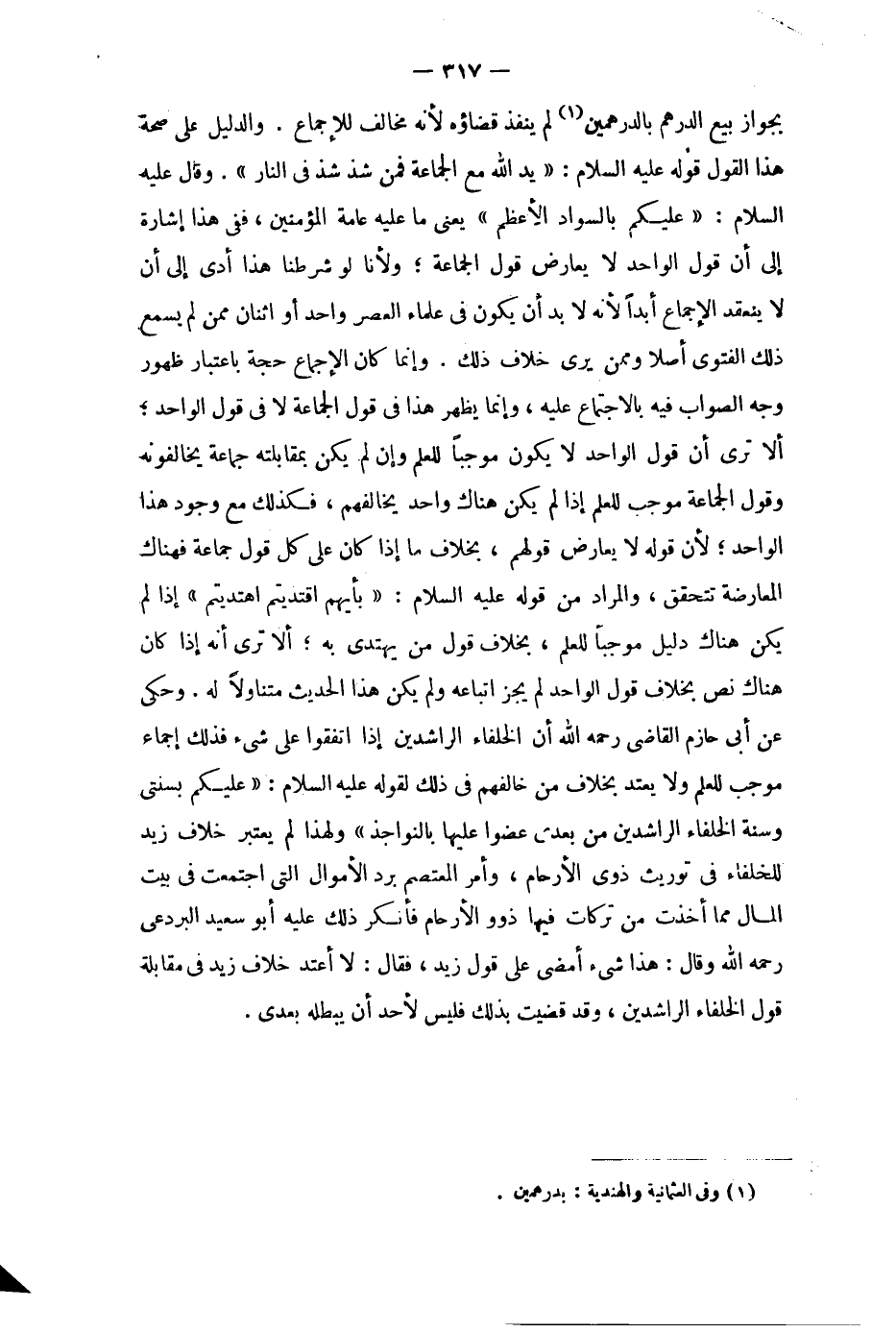 وَالدَّلِيل على صِحَة هَذَا القَوْل قَوْله عَلَيْهِ السَّلَام يَد الله مَعَ الْجَمَاعَة فَمن شَذَّ شَذَّ فِي النَّار
