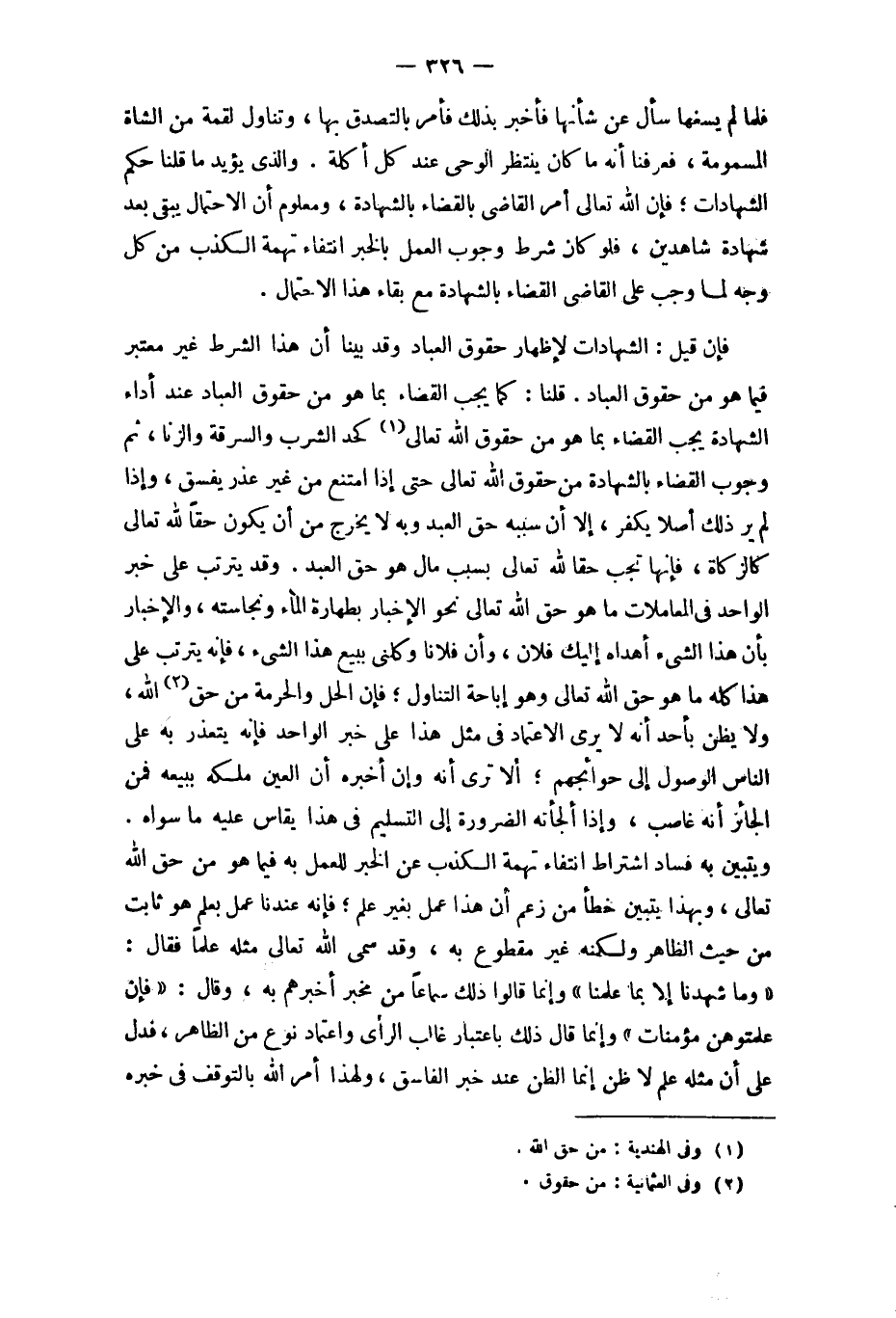 قُلْنَا كَمَا يجب الْقَضَاء بِمَا هُوَ من حُقُوق الْعباد عِنْد أَدَاء الشَّهَادَة يجب الْقَضَاء بِمَا هُوَ من حُقُوق الله تَعَالَى كَحَد الشّرْب وَالسَّرِقَة وَالزِّنَا ثمَّ وجوب الْقَضَاء بِالشَّهَادَةِ من حُقُوق الله تَعَالَى حَتَّى إِذا امْتنع من غير عذر يفسق وَإِذا لم ير ذَلِك أصلا يكفر إِلَّا أَن سَببه حق العَبْد وَبِه لَا يخرج من أَن يكون حَقًا لله تَعَالَى كَالزَّكَاةِ فَإِنَّهَا تجب حَقًا لله تَعَالَى بِسَبَب مَال هُوَ حق العَبْد