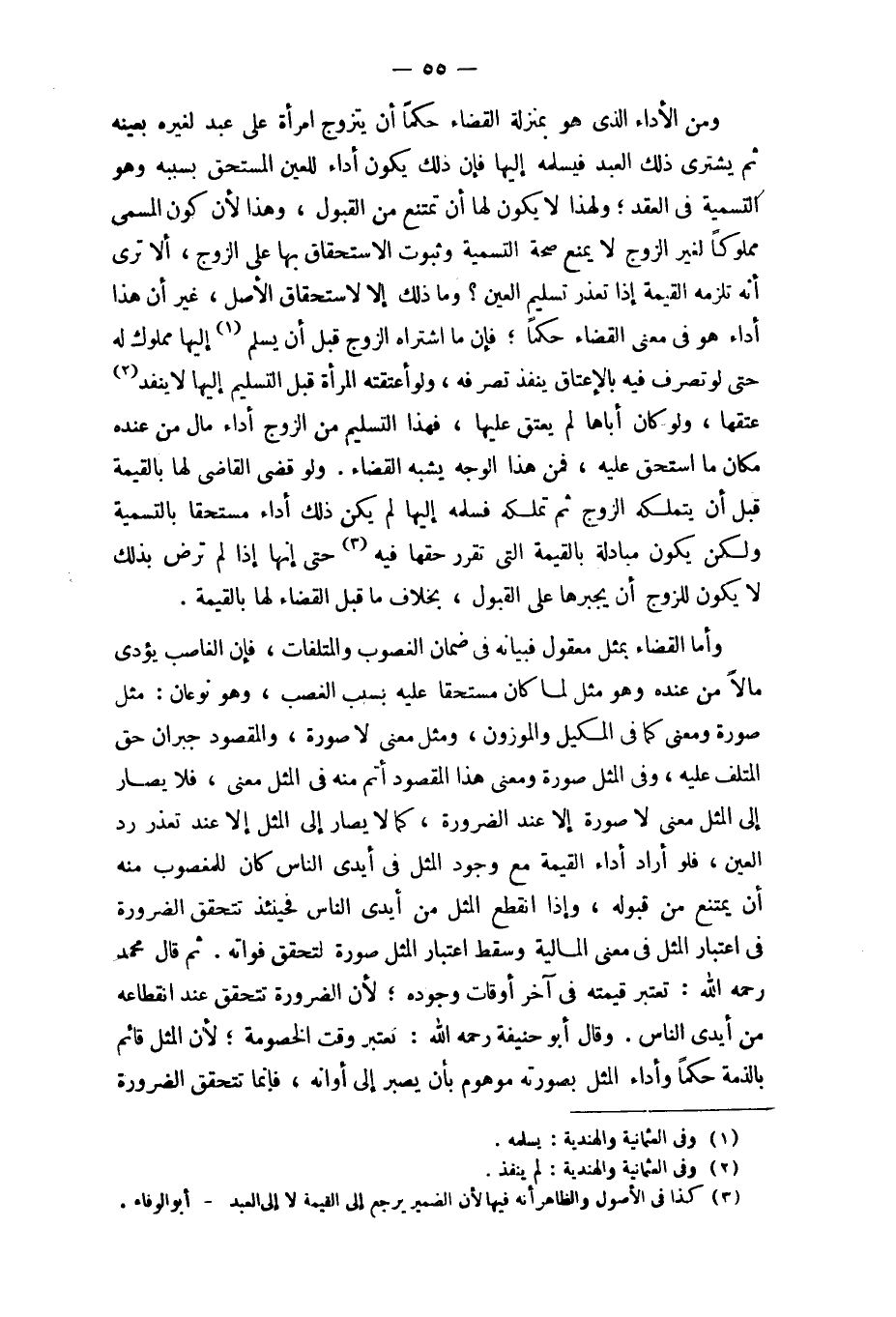 وَمن الْأَدَاء الَّذِي هُوَ بِمَنْزِلَة الْقَضَاء حكما أَن يتَزَوَّج امْرَأَة على عبد لغيره بِعَيْنِه ثمَّ يَشْتَرِي ذَلِك العَبْد فيسلمه إِلَيْهَا فَإِن ذَلِك يكون أَدَاء للعين الْمُسْتَحق بِسَبَبِهِ وَهُوَ التَّسْمِيَة فِي العقد وَلِهَذَا لَا يكون لَهَا أَن تمْتَنع من الْقبُول وَهَذَا لِأَن كَون الْمُسَمّى مَمْلُوكا لغير الزَّوْج لَا يمْنَع صِحَة التَّسْمِيَة وَثُبُوت الِاسْتِحْقَاق بهَا على الزَّوْج أَلا ترى أَنه تلْزمهُ الْقيمَة إِذا تعذر تَسْلِيم الْعين وَمَا ذَلِك إِلَّا لاسْتِحْقَاق الأَصْل غير أَن هَذَا أَدَاء هُوَ فِي معنى الْقَضَاء حكما فَإِن مَا اشْتَرَاهُ الزَّوْج قبل أَن يسلم إِلَيْهَا مَمْلُوك لَهُ حَتَّى لَو تصرف فِيهِ بِالْإِعْتَاقِ ينفذ تصرفه وَلَو أَعتَقته الْمَرْأَة قبل التَّسْلِيم إِلَيْهَا لَا ينْفد عتقهَا وَلَو كَانَ أَبَاهَا لم يعْتق عَلَيْهَا فَهَذَا التَّسْلِيم من الزَّوْج أَدَاء مَال من عِنْده مَكَان مَا اسْتحق عَلَيْهِ فَمن هَذَا الْوَجْه يشبه الْقَضَاء
