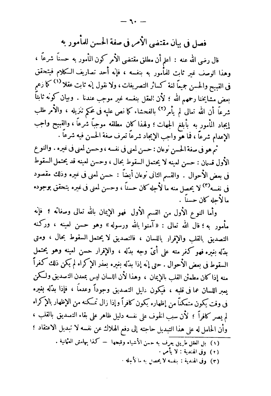قَالَ رَضِي الله عَنهُ اعْلَم أَن مُطلق مُقْتَضى الْأَمر كَون الْمَأْمُور بِهِ حسنا شرعا وَهَذَا الْوَصْف غير ثَابت للْمَأْمُور بِهِ بِنَفسِهِ فَإِنَّهُ أحد تصاريف الْكَلَام فَيتَحَقَّق فِي الْقَبِيح وَالْحسن جَمِيعًا لُغَة كَسَائِر التصريفات وَلَا نقُول إِنَّه ثَابت عقلا كَمَا زعم بعض مَشَايِخنَا رَحِمهم الله لِأَن الْعقل بِنَفسِهِ غير مُوجب عندنَا