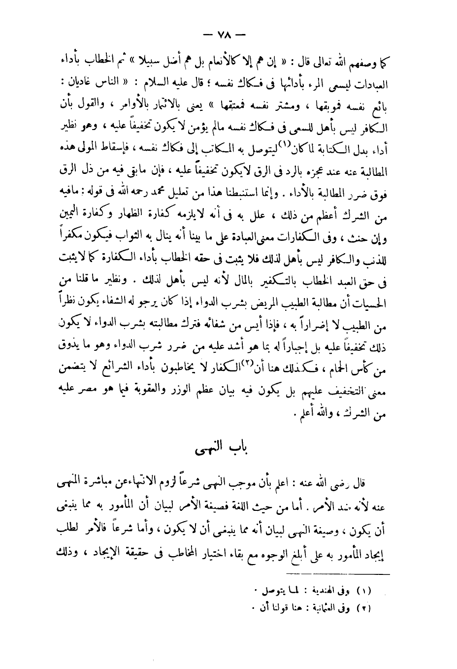 - صَلَّى اللَّهُ عَلَيْهِ وَسَلَّم َ - بَاب النَّهْي - صَلَّى اللَّهُ عَلَيْهِ وَسَلَّم َ - قَالَ رَضِي الله عَنهُ اعْلَم بِأَن مُوجب النَّهْي شرعا لُزُوم الِانْتِهَاء عَن مُبَاشرَة الْمنْهِي عَنهُ لِأَنَّهُ ضد الْأَمر