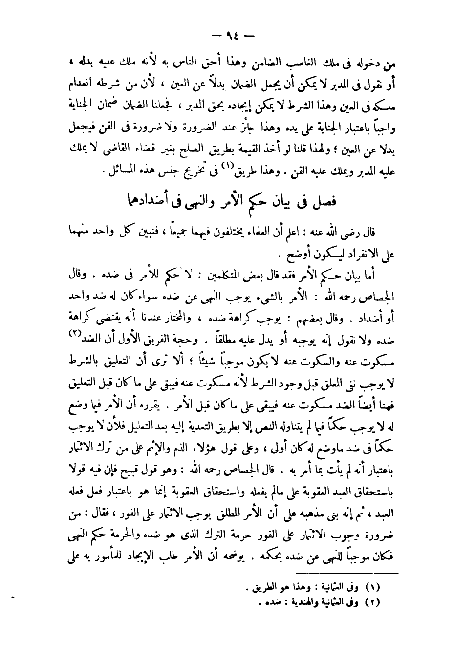 وَقَالَ الْجَصَّاص رَحمَه الله الْأَمر بالشَّيْء يُوجب النَّهْي عَن ضِدّه سَوَاء كَانَ لَهُ ضد وَاحِد أَو أضداد