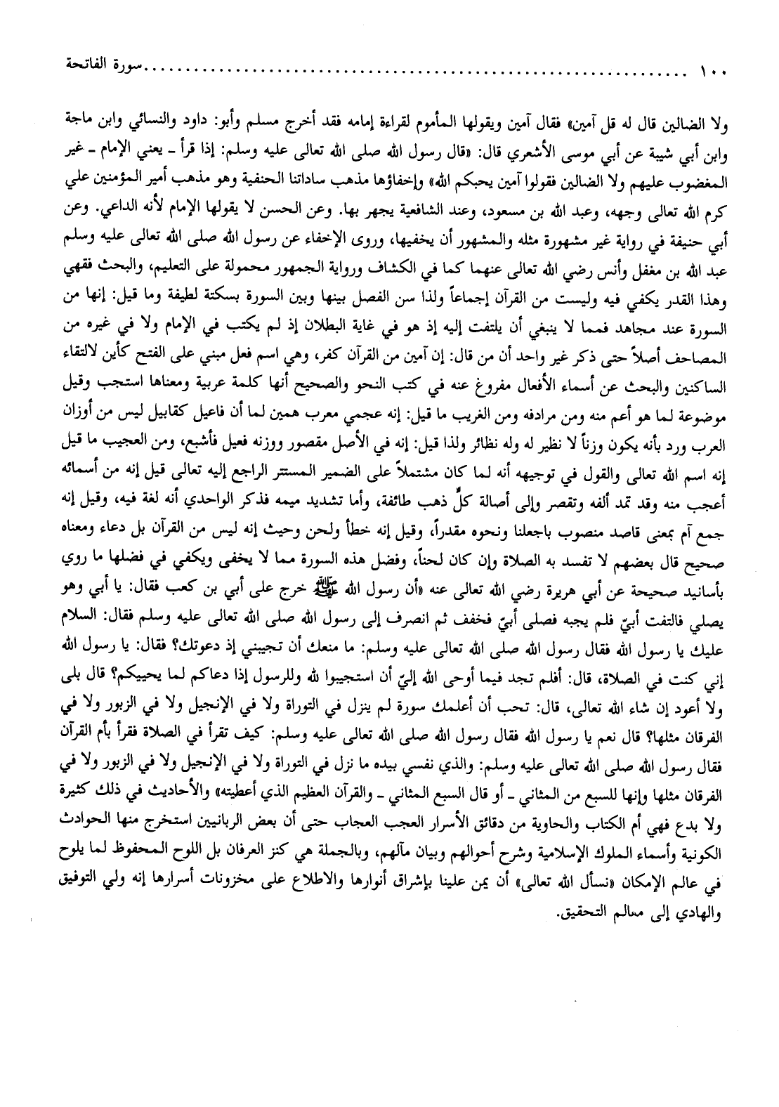 والأحاديث في ذلك كثيرة ولا بدع فهي أم الكتاب والحاوية من دقائق الأسرار العجب العجاب حتى أن بعض الربانيين استخرج منها الحوادث الكونية وأسماء الملوك الإسلامية وشرح أحوالهم وبيان مآلهم، وبالجملة هي كنز العرفان بل اللوح المحفوظ لما يلوح في عالم الإمكان «نسأل الله تعالى» أن يمن علينا بإشراق أنوارها والاطلاع على مخزونات أسرارها إنه ولي التوفيق والهادي إلى معالم التحقيق.