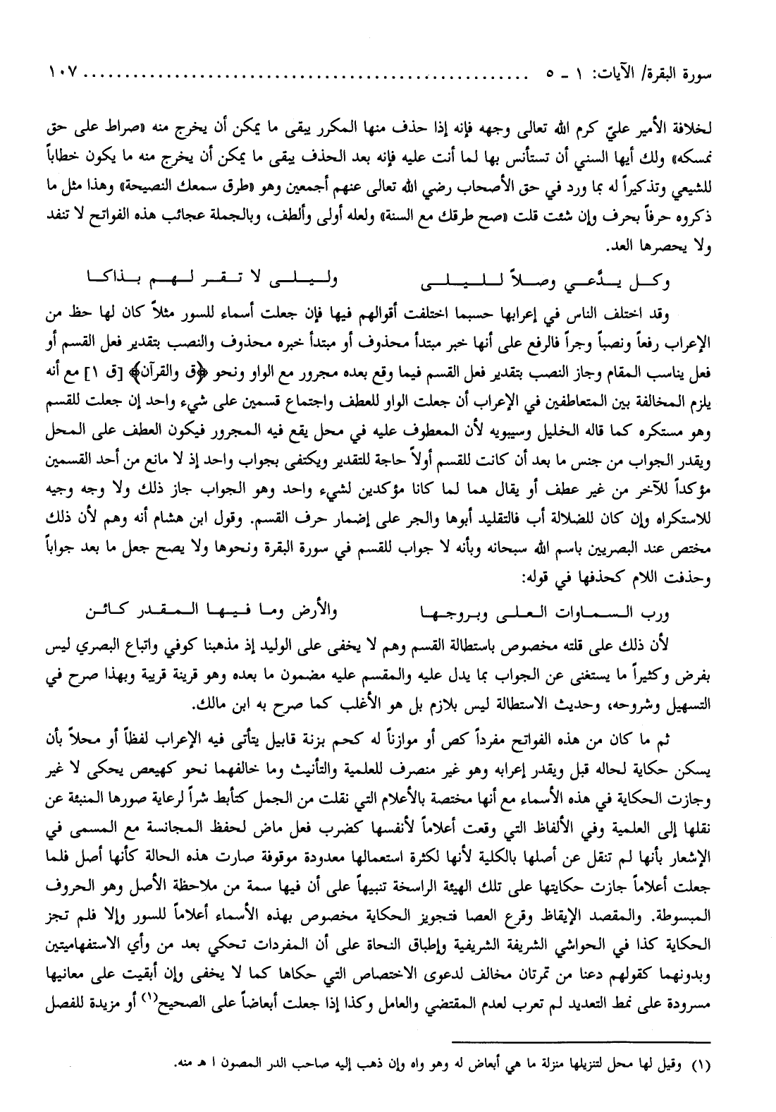 وقد اختلف الناس في إعرابها حسبما اختلفت أقوالهم فيها فإن جعلت أسماء للسور مثلا كان لها حظ من الإعراب رفعا ونصبا وجرا فالرفع على أنها خبر مبتدأ محذوف أو مبتدأ خبره محذوف والنصب بتقدير فعل القسم أو فعل يناسب المقام وجاز النصب بتقدير فعل القسم فيما وقع بعده مجرور مع الواو ونحو ق وَالْقُرْآنِ [ق 1] مع أنه يلزم المخالفة بين المتعاطفين في الإعراب أن جعلت الواو للعطف واجتماع قسمين على شيء واحد إن جعلت للقسم وهو مستكره كما قاله الخليل وسيبويه لأن المعطوف عليه في محل يقع فيه المجرور فيكون العطف على المحل ويقدر الجواب من جنس ما بعد أن كانت للقسم أولا حاجة للتقدير ويكتفى بجواب واحد إذ لا مانع من أحد القسمين مؤكدا للآخر من غير عطف أو يقال هما لما كانا مؤكدين لشيء واحد وهو الجواب جاز ذلك ولا وجه وجيه للاستكراه وإن كان للضلالة أب فالتقليد أبوها والجر على إضمار حرف القسم. وقول ابن هشام أنه وهم لأن ذلك مختص عند البصريين باسم الله سبحانه وبأنه لا جواب للقسم في سورة البقرة ونحوها ولا يصح جعل ما بعد جوابا وحذفت اللام كحذفها في قوله: