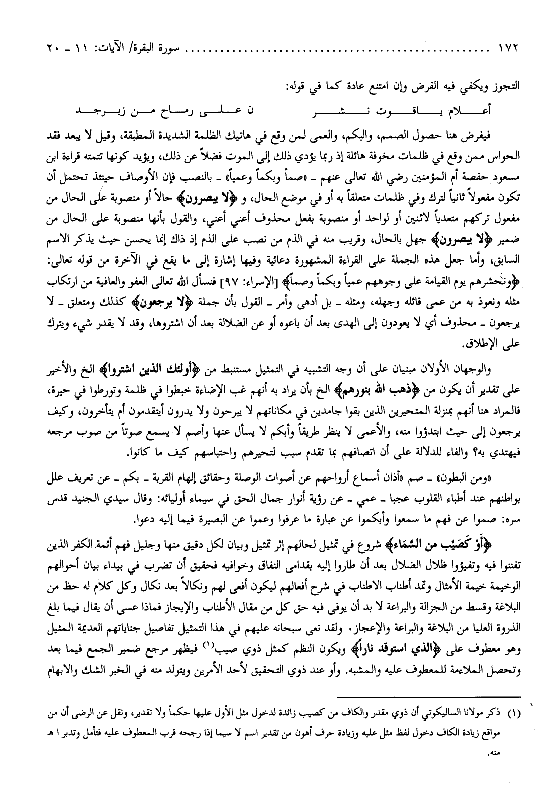 (¬1) ذكر مولانا الساليكوتي أن ذوي مقدر والكاف من كصيب زائدة لدخول مثل الأول عليها حكما ولا تقدير، ونقل عن الرضى أن من مواقع زيادة الكاف دخول لفظ مثل عليه وزيادة حرف أهون من تقدير اسم لا سيما إذا رجحه قرب المعطوف عليه فتأمل وتدبر اهـ منه.