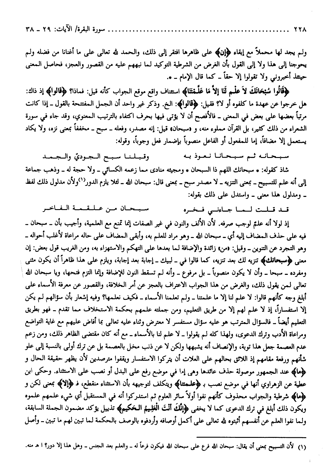 (¬1) لأن التسبيح بمعنى أن يقال: سبحان الله فرع على سبحان الله فيكون فرعا له- والعلم بعد الجنس- وهل هذا إلا دور؟ اهـ منه.