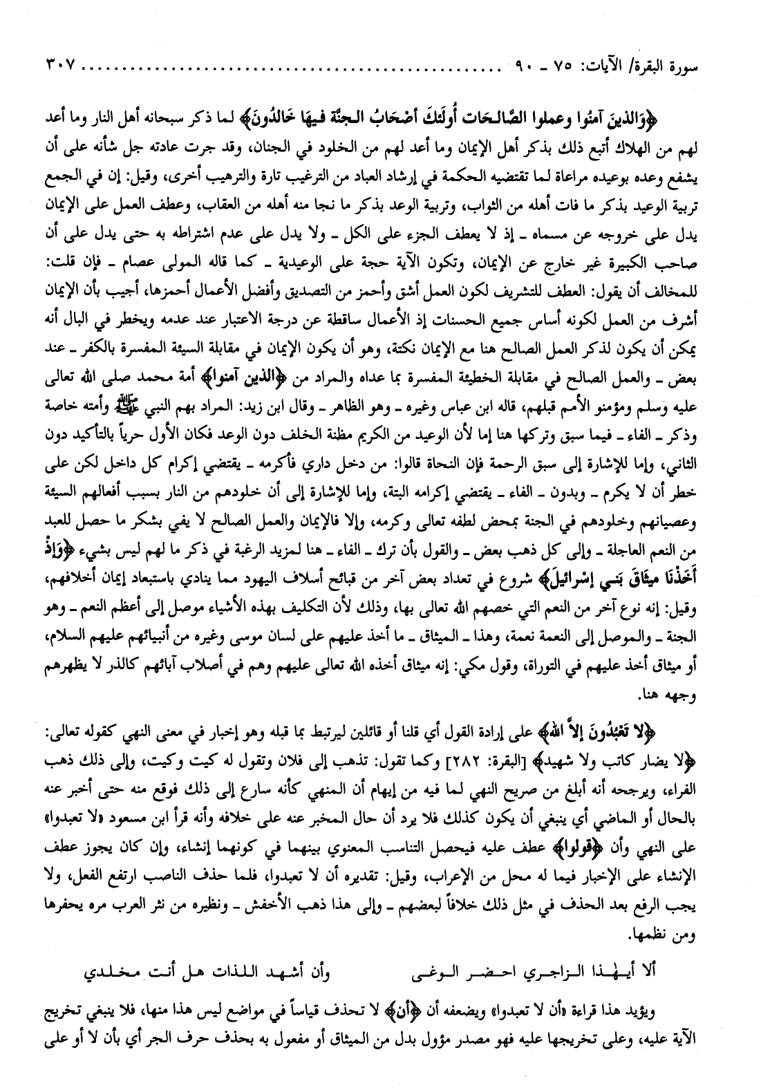 ويؤيد هذا قراءة «أن لا تعبدوا» ويضعفه أن أن لا تحذف قياسا في مواضع ليس هذا منها، فلا ينبغي تخريج الآية عليه، وعلى تخريجها عليه فهو مصدر مؤول بدل من الميثاق أو مفعول به بحذف حرف الجر أي بأن لا أو على