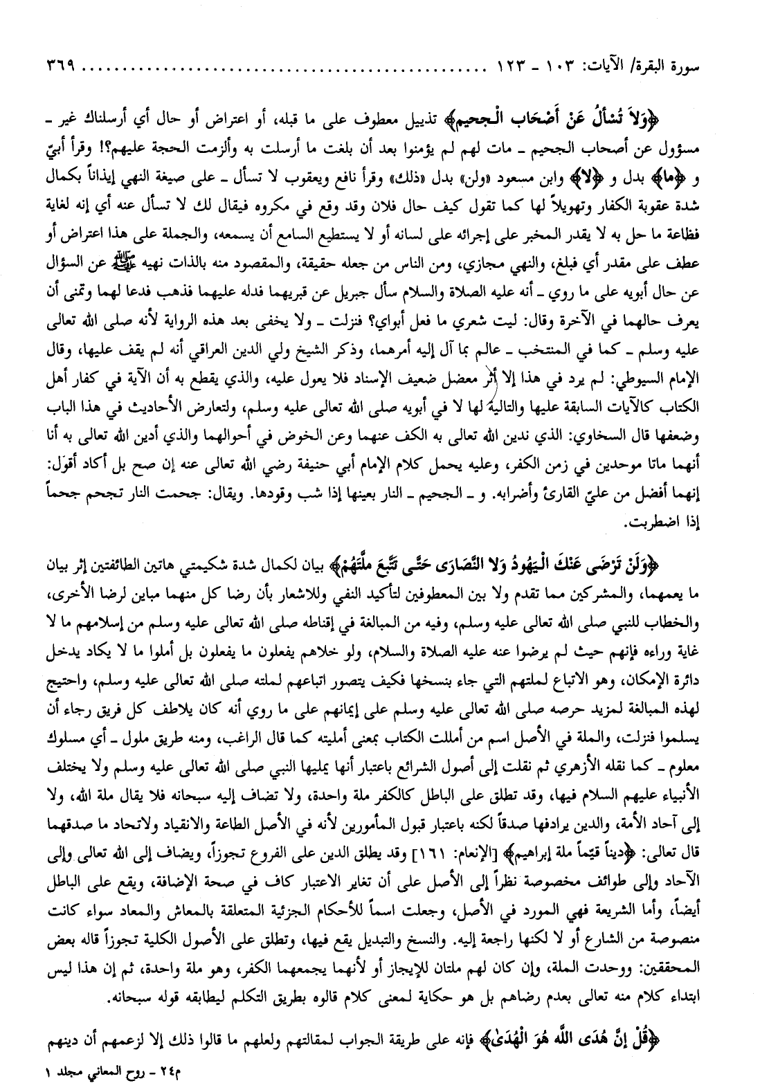 ولا يخفى بعد هذه الرواية لأنه صلى الله تعالى عليه وسلم- كما في المنتخب- عالم بما آل إليه أمرهما، وذكر الشيخ ولي الدين العراقي أنه لم يقف عليها، وقال الإمام السيوطي: لم يرد في هذا إلا أثر معضل ضعيف الإسناد فلا يعول عليه، والذي يقطع به أن الآية في كفار أهل الكتاب كالآيات السابقة عليها والتالية لها لا في أبويه صلى الله تعالى عليه وسلم، ولتعارض الأحاديث في هذا الباب وضعفها قال السخاوي: الذي ندين الله تعالى به الكف عنهما وعن الخوض في أحوالهما والذي أدين الله تعالى به أنا أنهما ماتا موحدين في زمن الكفر، وعليه يحمل كلام الإمام أبي حنيفة رضي الله تعالى عنه إن صح بل أكاد أقول: