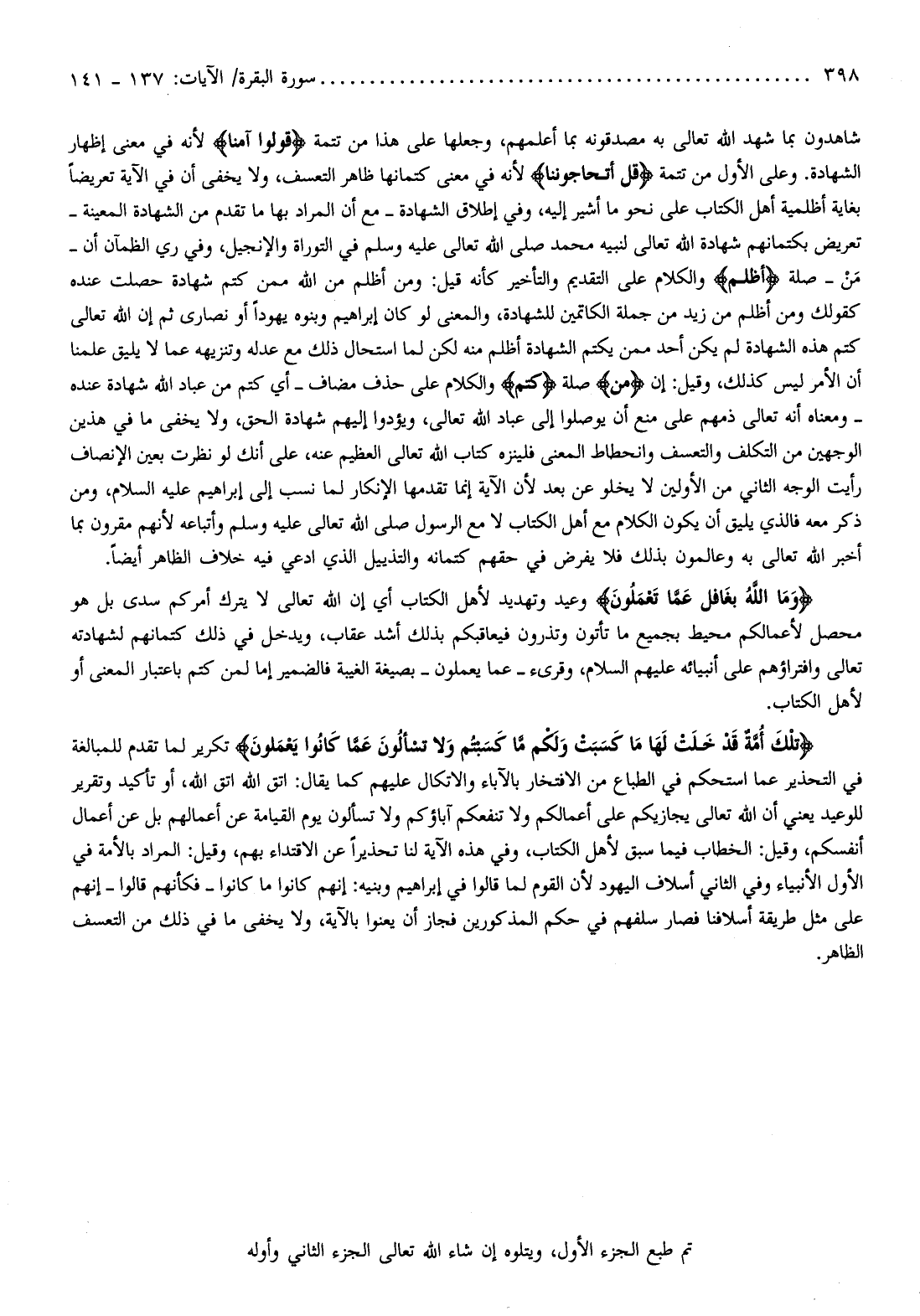 تم طبع الجزء الأول، ويتلوه إن شاء الله تعالى الجزء الثاني وأوله