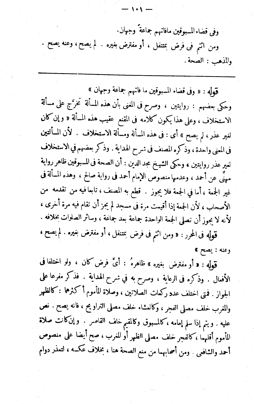 حكى بعضهم روايتين وصرح في المغني بأن هذه المسألة تخرج على مسألة الاستخلاف وعلى هذا يكون كلامه في المقنع عقيب هذه المسألة وإن كان لغير عذر لم يصح أي في هذه المسألة ومسألة الاستخلاف لأن المسألتين في المعنى واحدة وذكره المصنف في شرح الهداية وذكر بعضهم في الاستخلاف لغير عذر روايتين وحكى الشيخ مجد الدين أن الصحة في المسبوقين ظاهر رواية مهنى عن أحمد وعدمها منصوص الإمام أحمد في رواية صالح وهذه المسألة في غير الجمعة أما في الجمعة فلا يجوز قطع به المصنف تابعا فيه من تقدمه من الأصحاب لأن الجمعة إذا أقيمت مرة في مسجد لم يجز أن تقام فيه مرة أخرى لأنه لا يجوز أن تصلى الجمعة الواحدة جماعة بعد جماعة وسائر الصلوات بخلافه.
