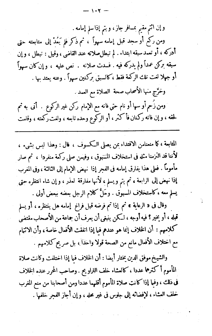 المتابعة كما منعنا من الاقتداء بمن يصلي الكسوف قال وهذا ليس بشيء لأننا قد التزمنا مثله في استخلاف المسبوق وفيمن صلى ركعة منفردا ثم صار مأموما فعلى هذا يفارق إمامه في الفجر إذا نهض الإمام إلى الثالثة وفي المغرب إذا نهض إلى الرابعة ثم يتم ويسلم لأنها مفارقة لعذر وإن شاء انتظره حتى يسلم معه كاستخلاف المسبوق وحل كلام الرجل بعضه ببعض أولى.