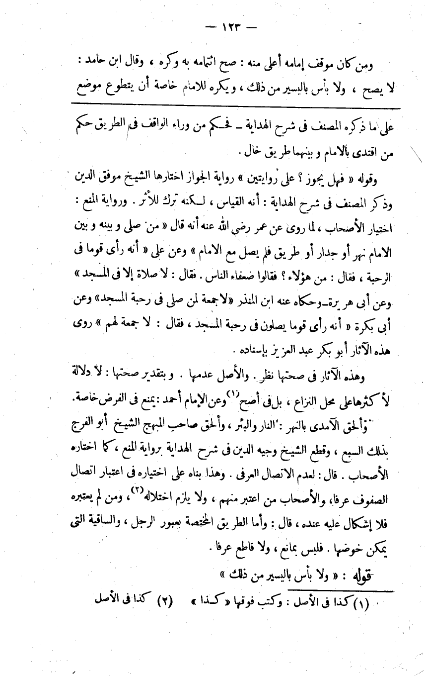 وهذه الآثار في صحتها نظر والأصل عدمها وبتقدير صحتها لا دلالة لأكثرها على محل النزاع بل في أصح1 وعن الإمام أحمد يمنع في الفرض خاصة.