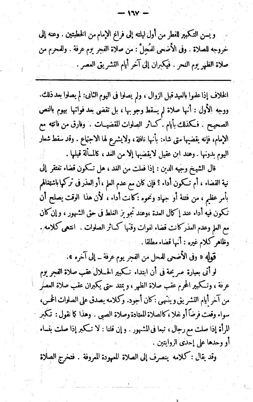 لو أتى بعبارة صريحة في أن ابتداء تكبيرة الحلال عقب صلاة الفجر يوم عرفة وتكبير المحرم عقب صلاة الظهر ويمتد حتى يكبران عقب صلاة العصر من آخر أيام التشريق وينتهي كان أجود وكلامه يصدق على الصلوات الخمس سواء وقعت فرضا أو نفلا كالصلاة المعتادة وصلاة الصبي وهذا كما نقول تكبر المرأة إذا صلت مع رجال تبعا في المشهور وإن قلنا لا تكبر إذا صلت بنساء أو وحدها على إحدى الروايتين.
