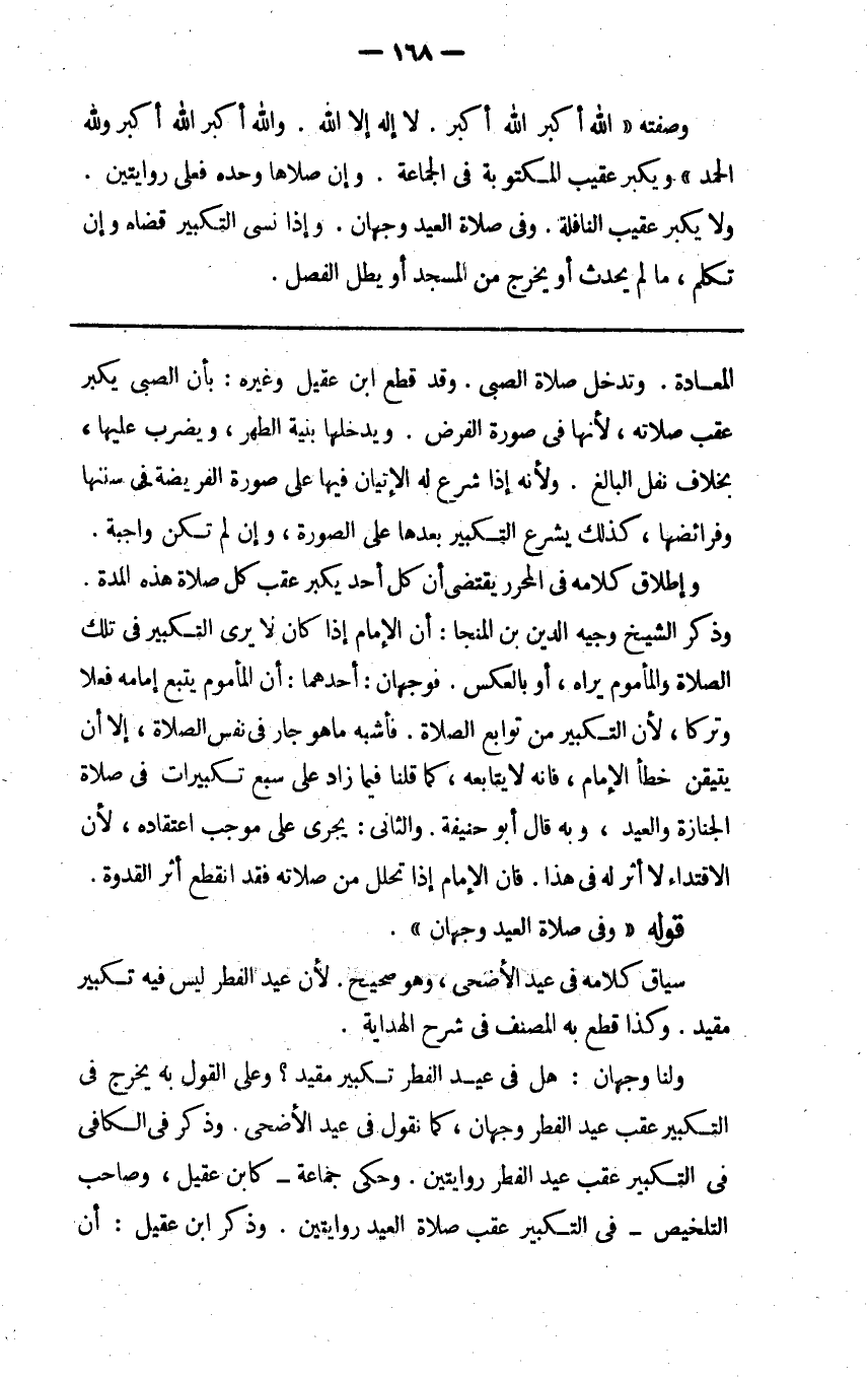 ولنا وجهان هل في عيد الفطر تكبير مقيد وعلى القول به يخرج في التكبير عقب عيد الفطر وجهان كما نقول في عيد الأضحى وذكر في الكافي في التكبير عقب عيد الفطر روايتين وحكى جماعة كابن عقيل وصاحب التلخيص في التكبير عقب صلاة العيد روايتين وذكر ابن عقيل أن