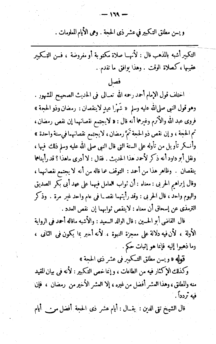 قال الشيخ تقي الدين يقال أيام عشر ذي الحجة أفضل من أيام