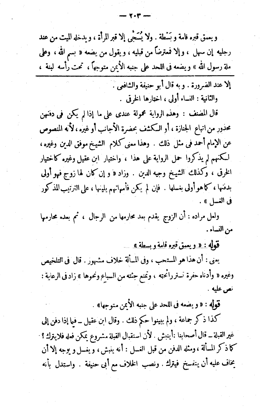 قال المصنف وهذه الرواية محمولة عندي على ما إذا لم يكن في دفنهن محذور من اتباع الجنازة أو الكشف بحضرة الأجانب أو غيره لأنه المنصوص عن الإمام أحمد في مثل ذلك وهذا معنى كلام الشيخ موفق الدين وغيره لكنهم لم يذكروا حمل الرواية على هذا واختيار ابن عقيل وغيره كاختيار الخرقي وكذلك الشيخ وجيه الدين وزاد وإن كان لها زوج فهو أولى بدفنها كما هو أولى بغسلها فإن لم يكن فأمهاتهم يلينها على الترتيب المذكور في الغسل.