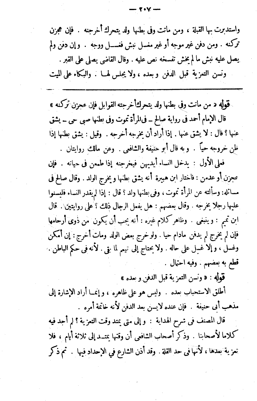قال الإمام أحمد في رواية صالح في المرأة تموت وفي بطنها صبي حي يشق عنها قال لا يشق عنها إذا أراد أن يخرجه أخرجه وقيل يشق بطنها إذا ظن خروجه حيا وبه قال أبو حنيفة والشافعي وعن مالك روايتان.