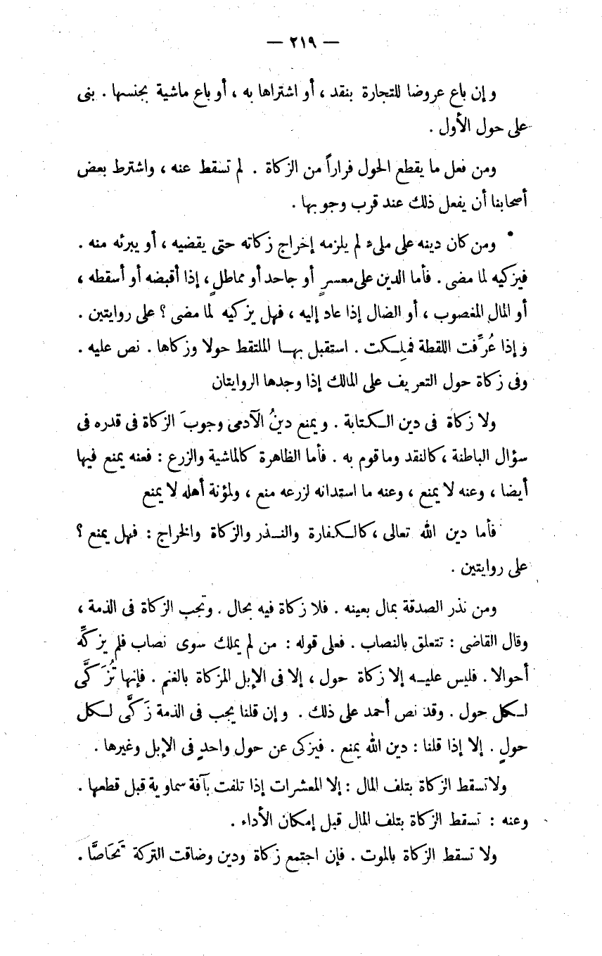 ومن كان دينه على ملىءلم يلزمه إخراج زكاته حتى يقضيه أو يبرئه منه فيزكيه لما مضى فأما الدين على معسر أو جاحد أو مماطل إذا أقبضه أو أسقطه أو المال المغصوب أو الضال إذا عاد إليه فهل يزكيه لما مضى على روايتين وإذا عرفت اللقطة فملكت استقبل بها الملتقط حولا وزكاها نص عليه وفي زكاة حول التعريف على المالك إذا وجدها الروايتان.