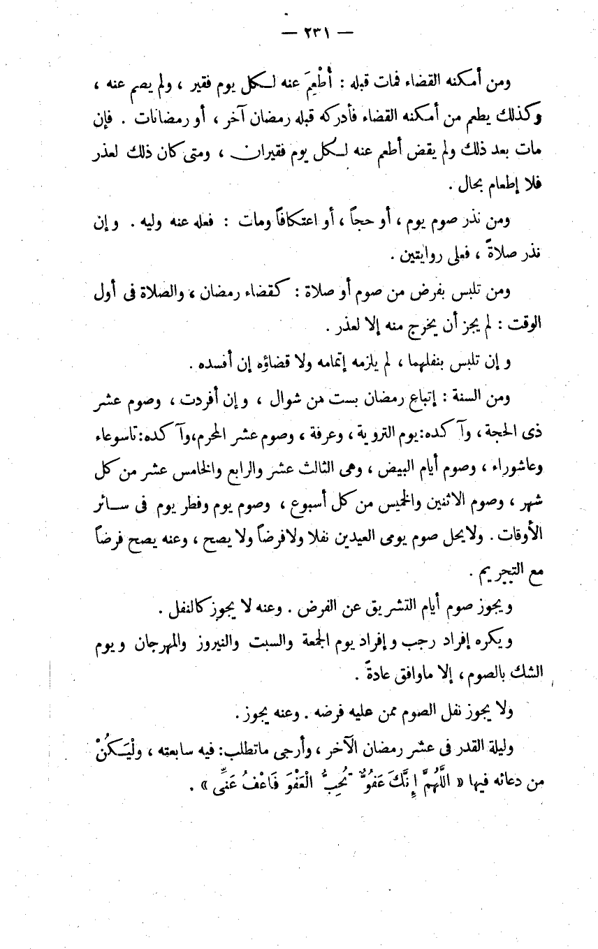 وليلة القدر في عشر رمضان الآخر وأرجى ما تطلب فيه سابعته وليكن من دعائه فيها "اللهم إنك عفو تحب العفو فاعف عني".