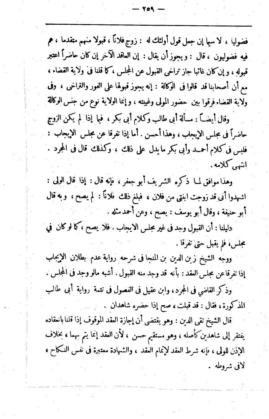 وقال أيضا مسألة أبي طالب وكلام أبي بكر فيما إذا لم يكن الزوج حاضرا في مجلس الإيجاب وهذا أحسن أما إذا تفرقا عن مجلس الإيجاب فليس في كلام أحمد وأبي بكر ما يدل على ذلك وكذلك قال في المجرد انتهى كلامه.