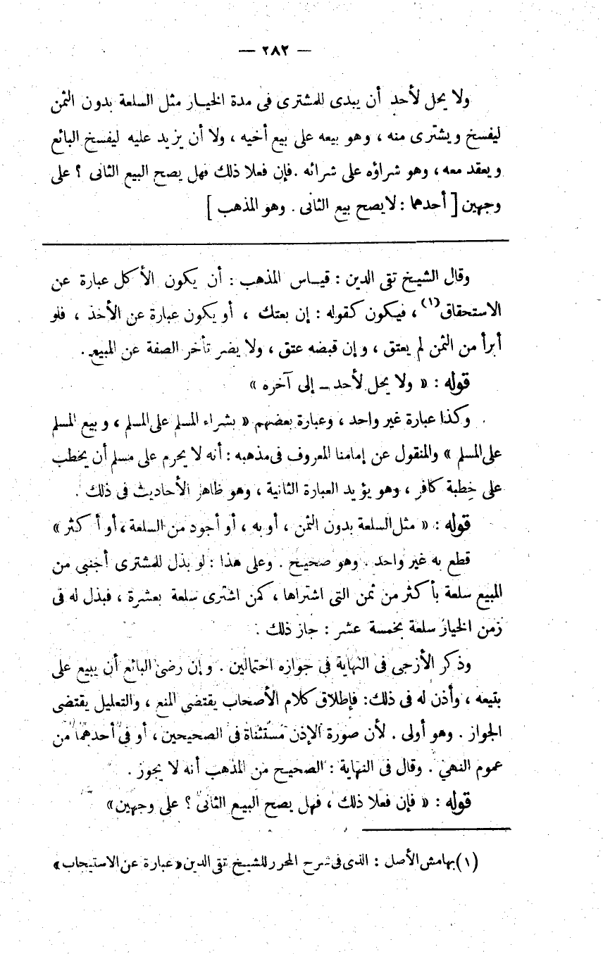 1- بهامس الأصل: الذي في شرح المحرر للشيخ تقي الدين "عبارة عن الاستيجاب".