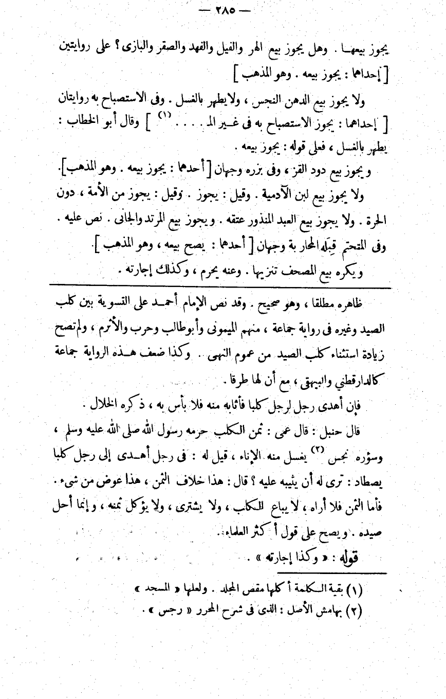 يجوز بيعها وهل يجوز بيع الهر والفيل والفهد والصقر والبازي على روايتين [إحداهما: يجوز بيعه وهو المذهب] .