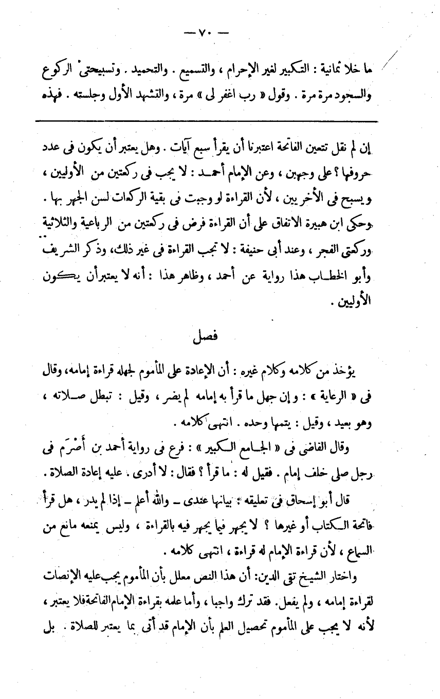 واختار الشيخ تقي الدين أن هذا النص معلل بأن المأموم يجب عليه الإنصات لقراءة إمامه ولم يفعل فقد ترك واجبا وأما علمه بقراءة الإمام الفاتحة فلا يعتبر لأنه لا يجب على المأموم تحصيل العلم بأن الإمام قد أتى بما يعتبر للصلاة بل