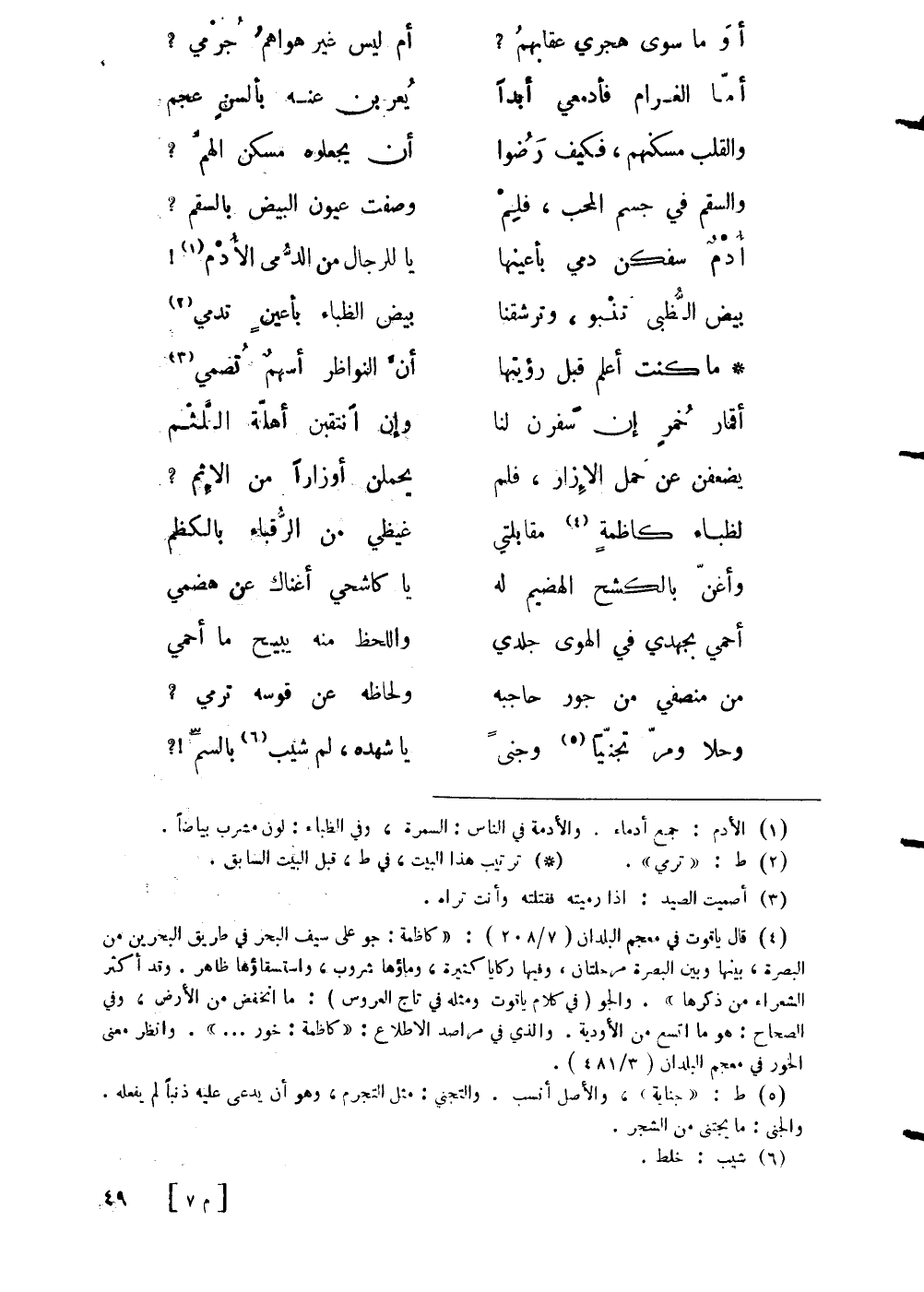 ساحر طرفهُ وساجٍ وإنّي ... لتمنّيه ساهِرُ الطّرف ساجم