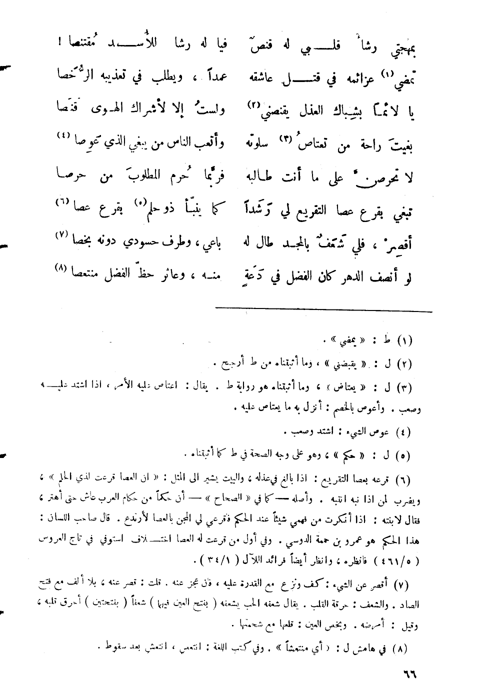 ألا مخبرٌ عنّي قلوباً أبيةً ... يقول لها: كم ذي القساوة؟ ليِني!