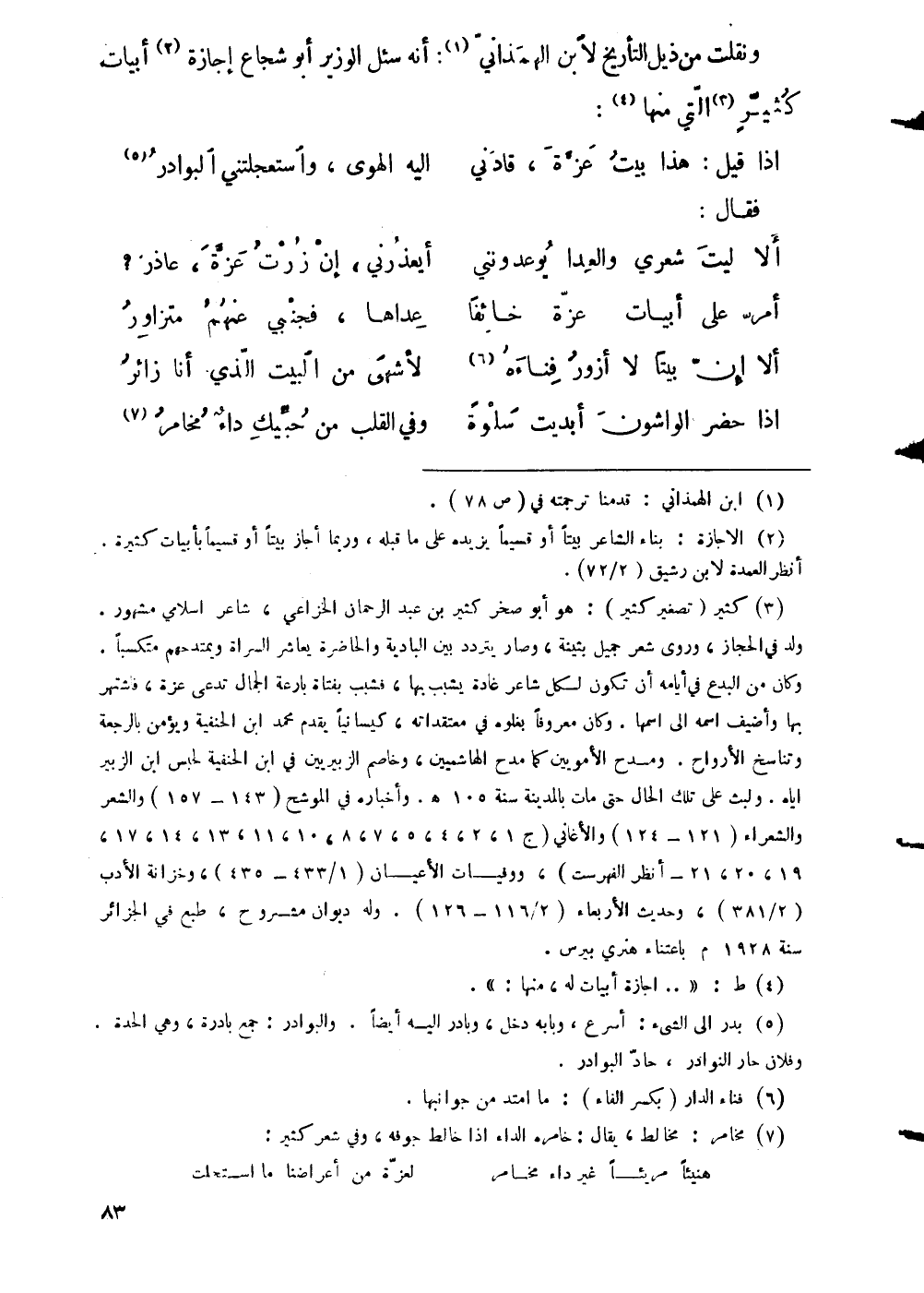 ومنها يصف حاله: وقد علم عصري وبنوه، وزماني وأهلوه، أني ابتدرت شعفات الفضل غلاماً يفعةً، هاجراً إليه كل خفض ودعه، ففرعتها شامذ النطاق، مشمراً عن
