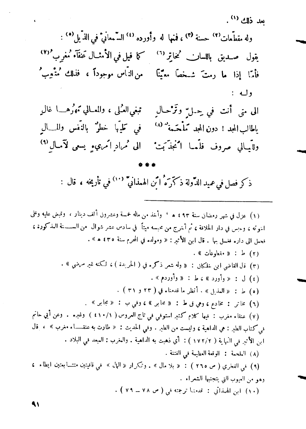 فلا تطلبنْ منه سوى سّدِ خَلَّةٍ ... فإن زاد شيئاً فليكنْ للمواهبِ