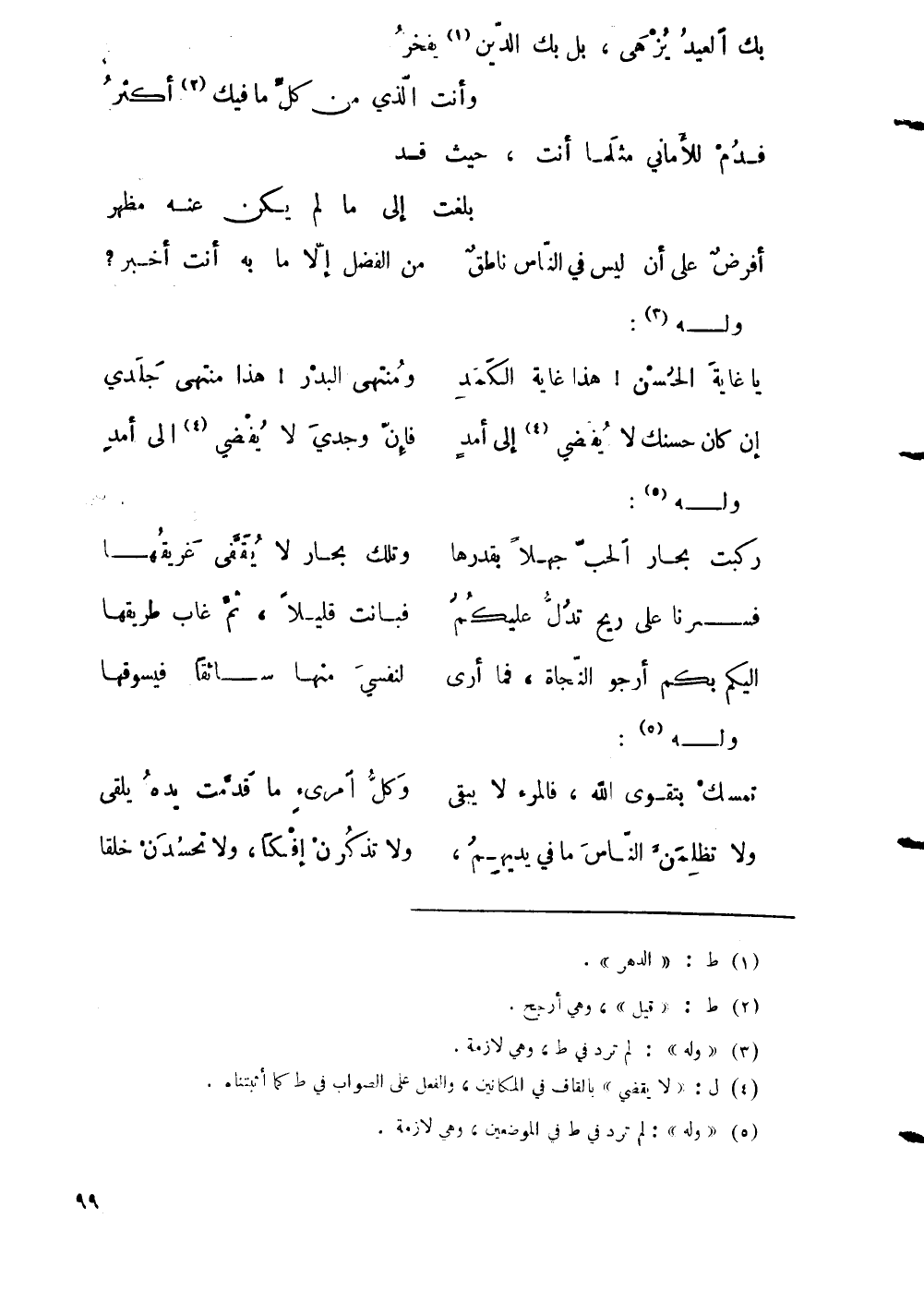 التاء وقوله في مديح الوزير الزينبي، في الأيام المسترشدية: