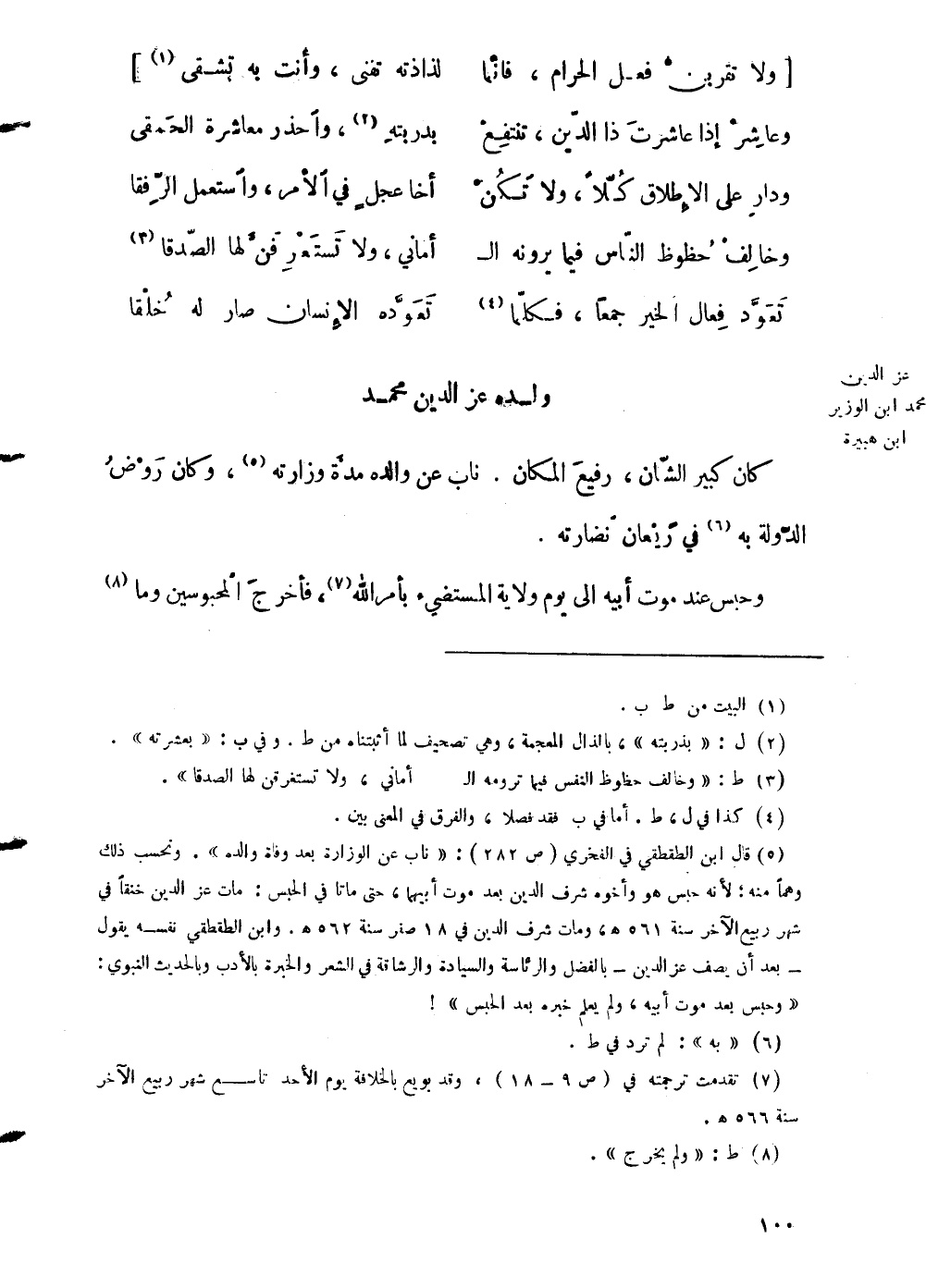 وقوله في الوزير عضد الدين بن رئيس الرؤساء، وكان أستاذ الدار في الأيام المستنجدية: