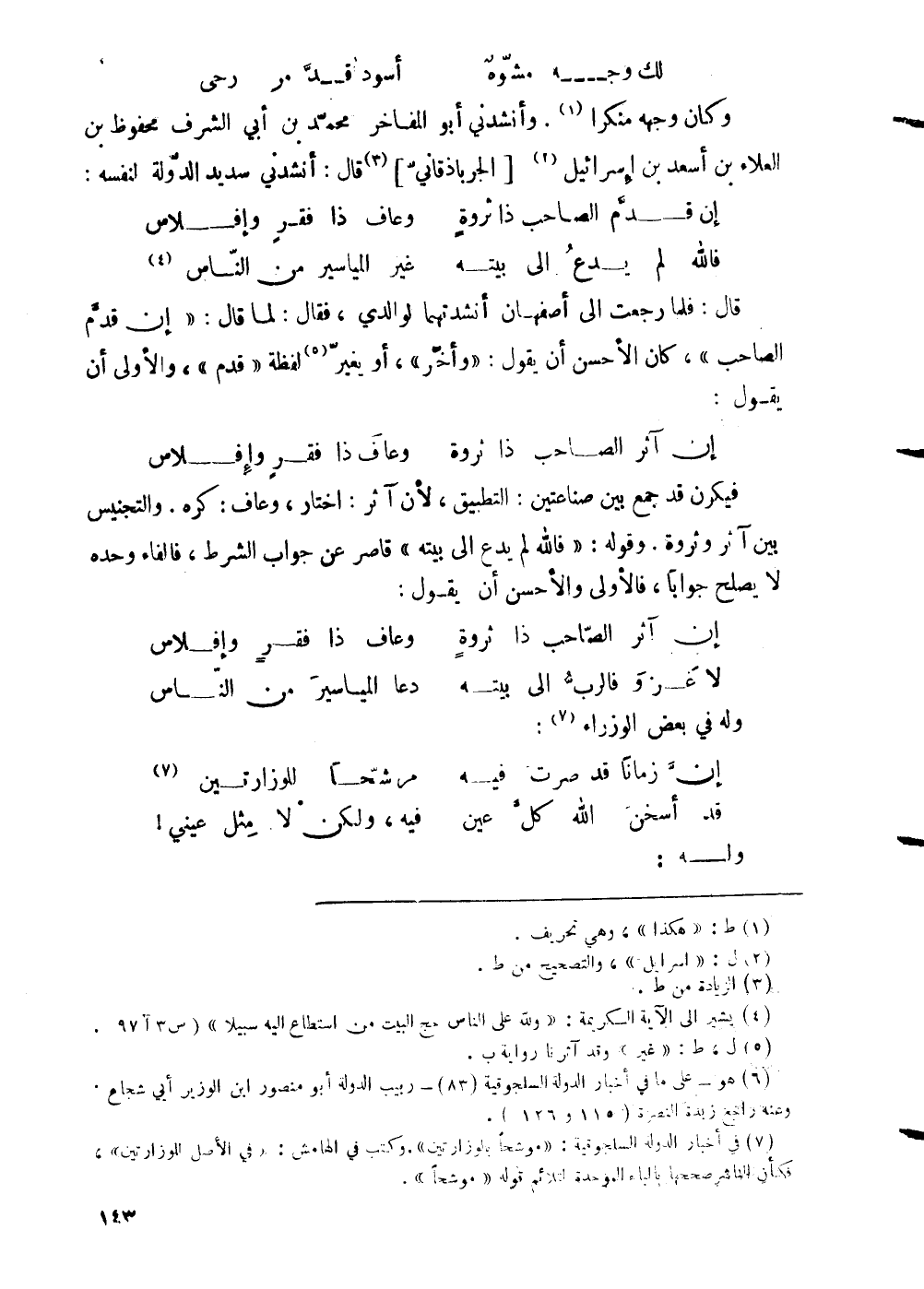 العين وقوله من قصيدة في مدح أنوشروان بن خالد، الوزير: