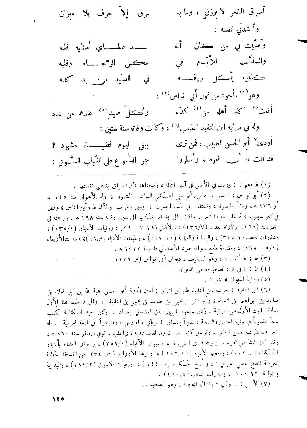 وما طاب ذكرُ المحسنينَ، وما جرى النَّ ... سِيمُ بأرجاءِ المُرُوتِ البلاقعِ