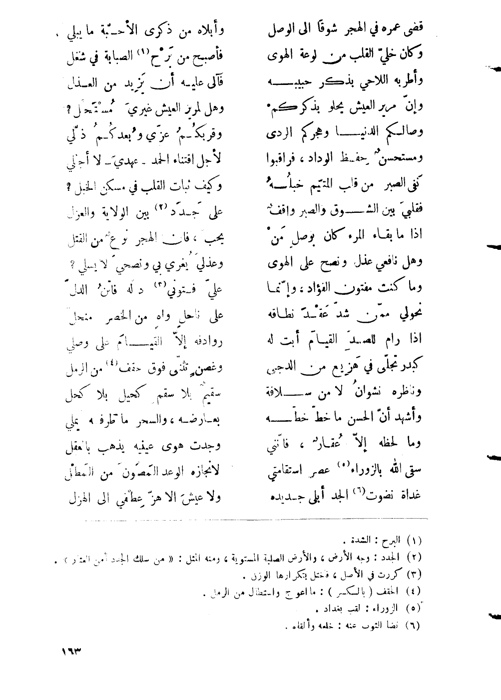 هجرتُ الهوى والعمرُ غَضٌّ نباتُهُ ... فكيف وقد لاحَ المَشيِبُ بِمَفْرِقي!