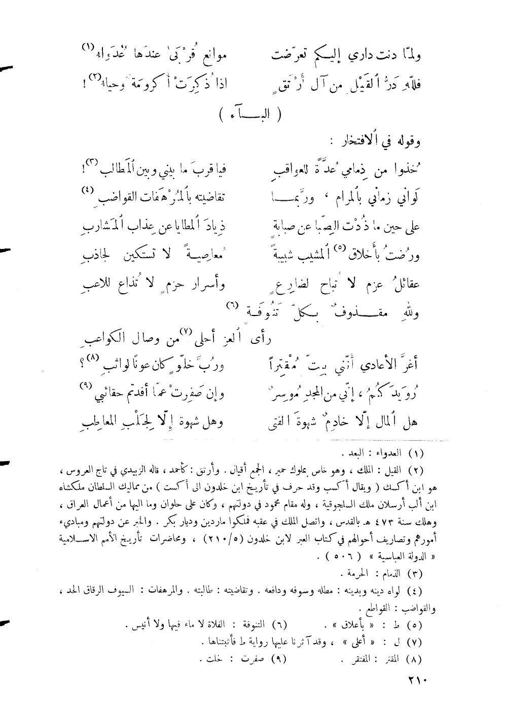 وقوله من قصيدة نظمها في ريعان عمره، في سنة عشرين وخمس مئة: