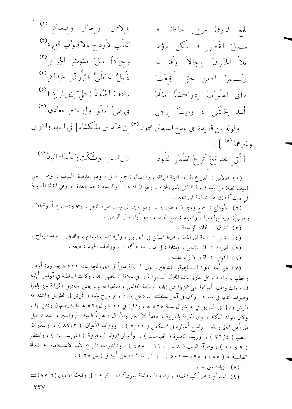 وتوسّدوا عمدَ التّرابِ، ولم يزل ... مُلْقَى نِعالِهِمُ الدِّمَقْسُ المُعْلَمُ