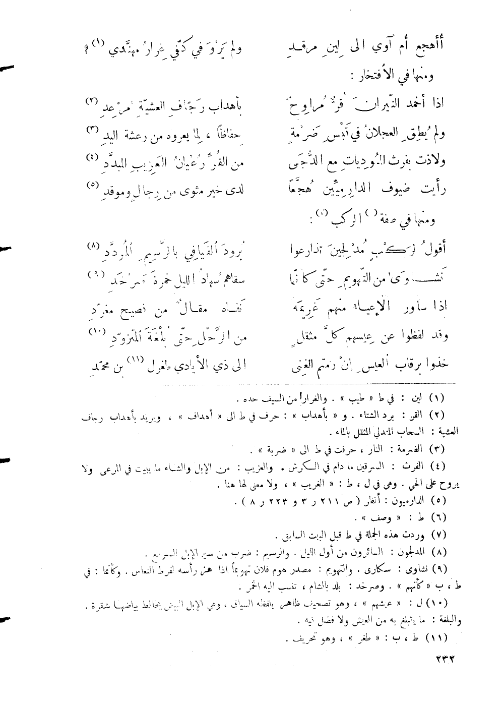 صال كريم الركابي بضبع سماها زوجة على ابنة كبيدة العلوية صيال الأشراف في أيام الإنصاف على ذمي ذي كبيرة من جرم. ولا قناعة من البأس المهيب بيسير العقاب حتى تملأ السياسة ضواحي الكرخ الفيح، ويعلم كمال الرأفة بأغراض الطائفة. وإن خلا الركاب الكريم، شد غلام من تميم، راضياً وفاخراً، مع سحب ذيل خيلائه على التيجان.