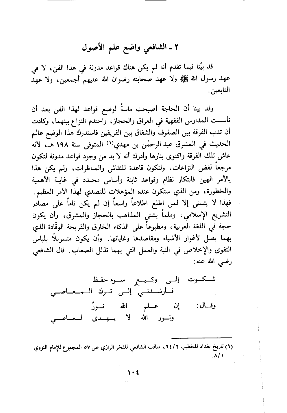 ٢ - الشافعي واضع علم الأصول
