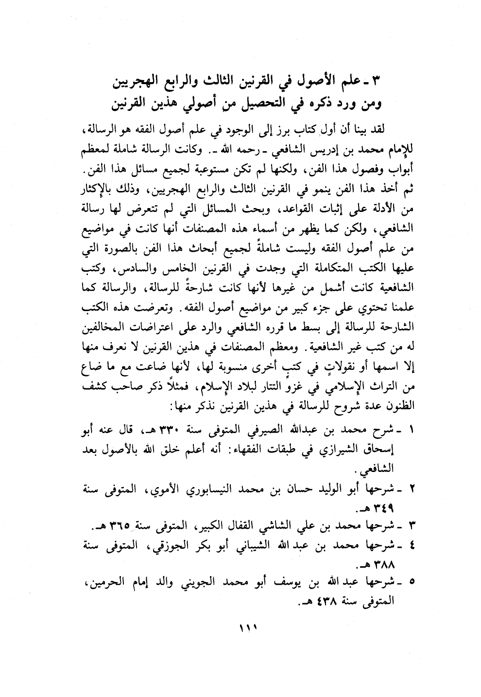 ٣ - علم الأصول في القرنين الثالث والرابع الهجريين ومن ورد ذكره في التحصيل من أصولي هذين القرنين