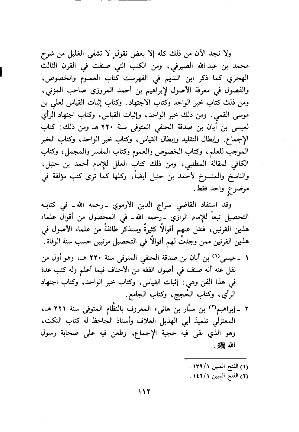 ١ - عيسى (١) بن أبان بن صدقة الحنفي المتوفى سنة ٢٢٠ هـ، وهو أول من نقل عنه أنه صنف في أصول الفقه من الأحناف فيما أعلم وله كتب عدة في هذا الفن وهي: إثبات القياس، وكتاب خبر الواحد، وكتاب اجتهاد الرأي، وكتاب الحُجج، وكتاب الجامع.