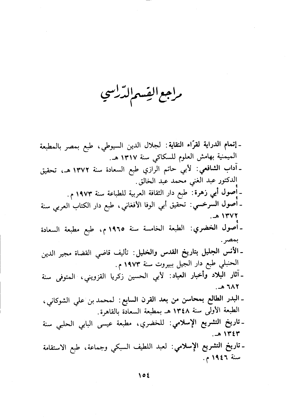 - تاريخ التشريع الإِسلامي: للخضري، مطبعة عيسى البابي الحلبي سنة ١٣٤٣ هـ.