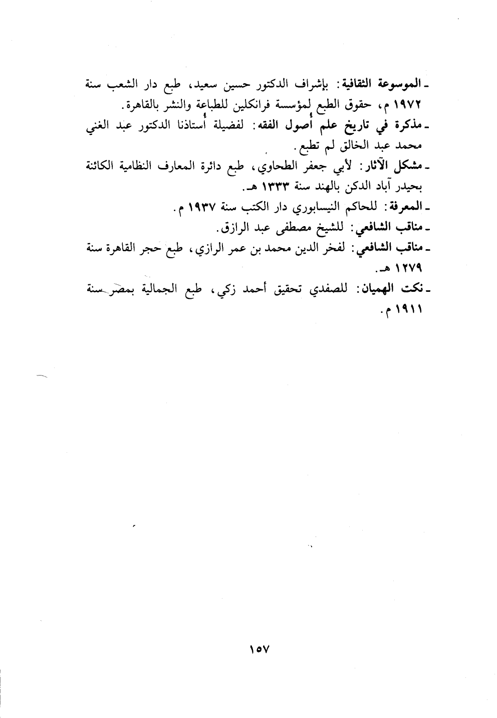 - مناقب الشافعي: لفخر الدين محمد بن عمر الرازي، طبع حجر القاهرة سنة ١٢٧٩ هـ.