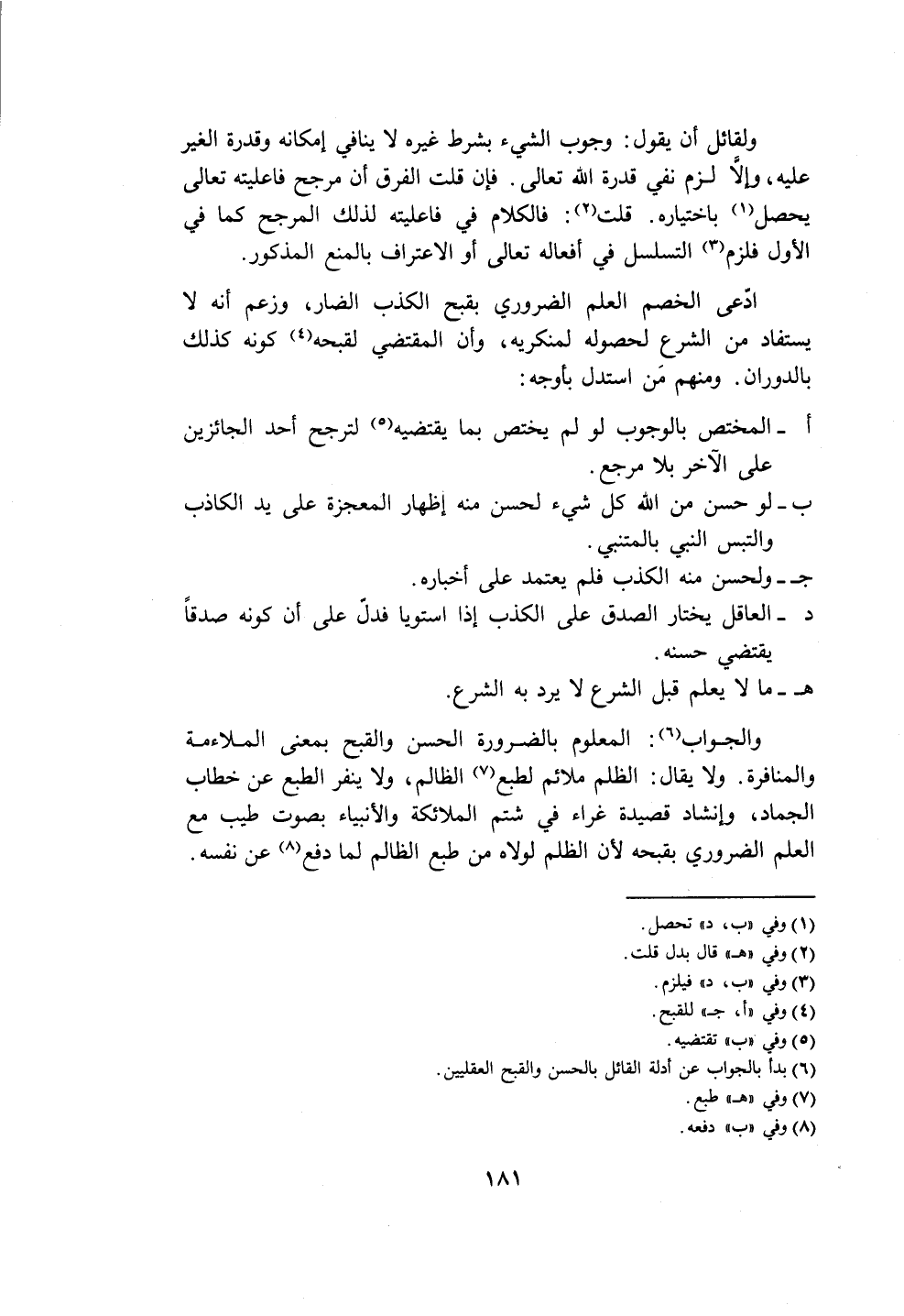 (٦) بدأ بالجواب عن أدلة القائل بالحسن والقبح العقليين.
