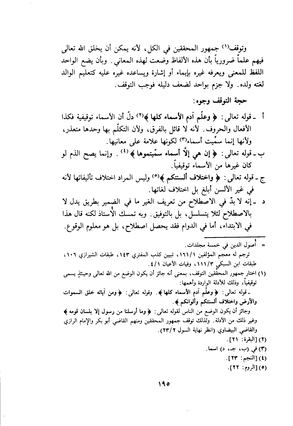 (١) اختار جمهور المحقِّقين التوقف، بمعنى أنه جائز أن يكون الوضع من الله تعالى وحينئذٍ يسمى توقيفياً، وذلك للأدلة الواردة وأهمها: