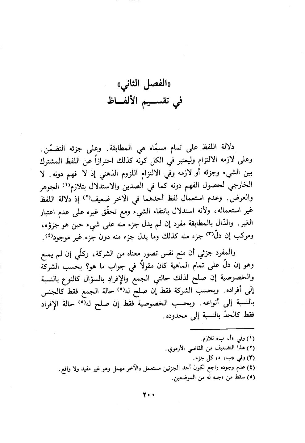 " الفصل الثاني" في تقسيم الألفاظ